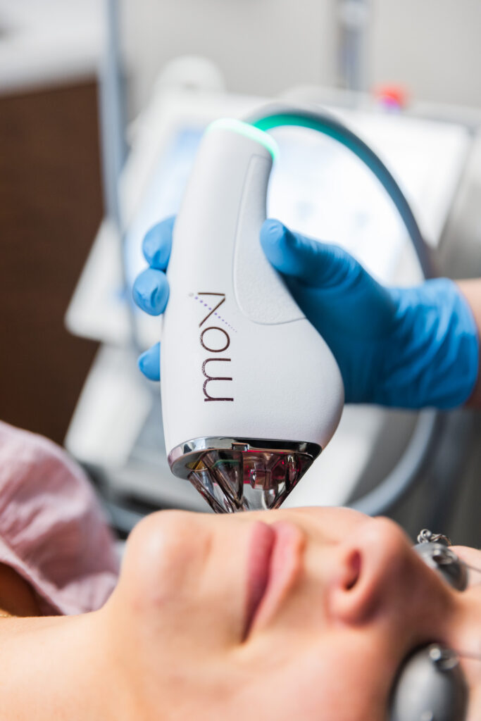 MOXI is a non-ablative fractionated laser that converts electrical energy into light, to target pigment by creating tiny perforations in the superficial top layer of skin.