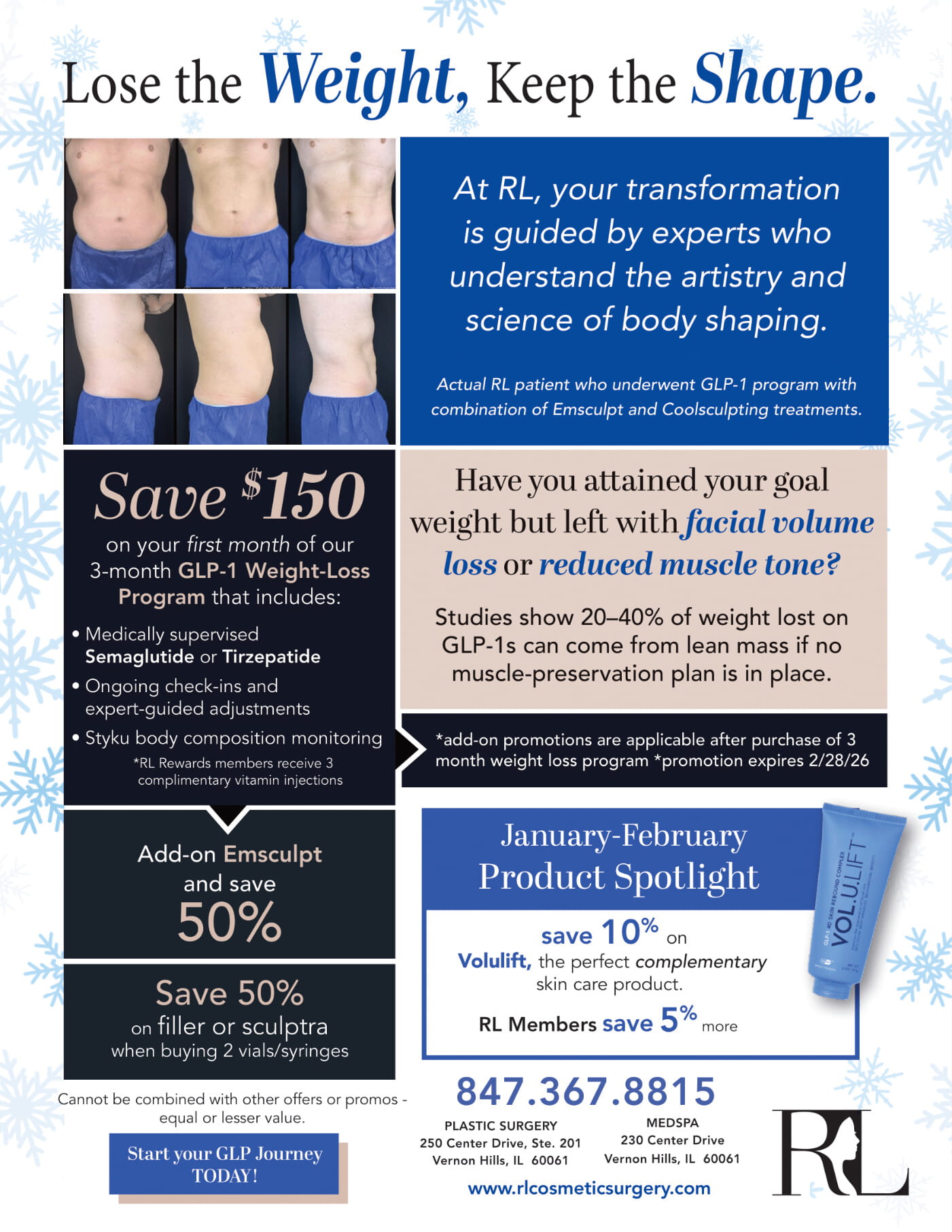 Call RL Center or ask your aesthetician to redeem special.